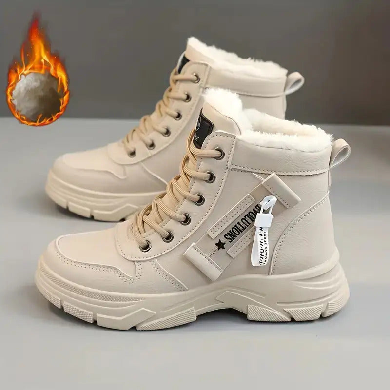1 Pair Women's Beige -Lined Ankle Boots with Plush