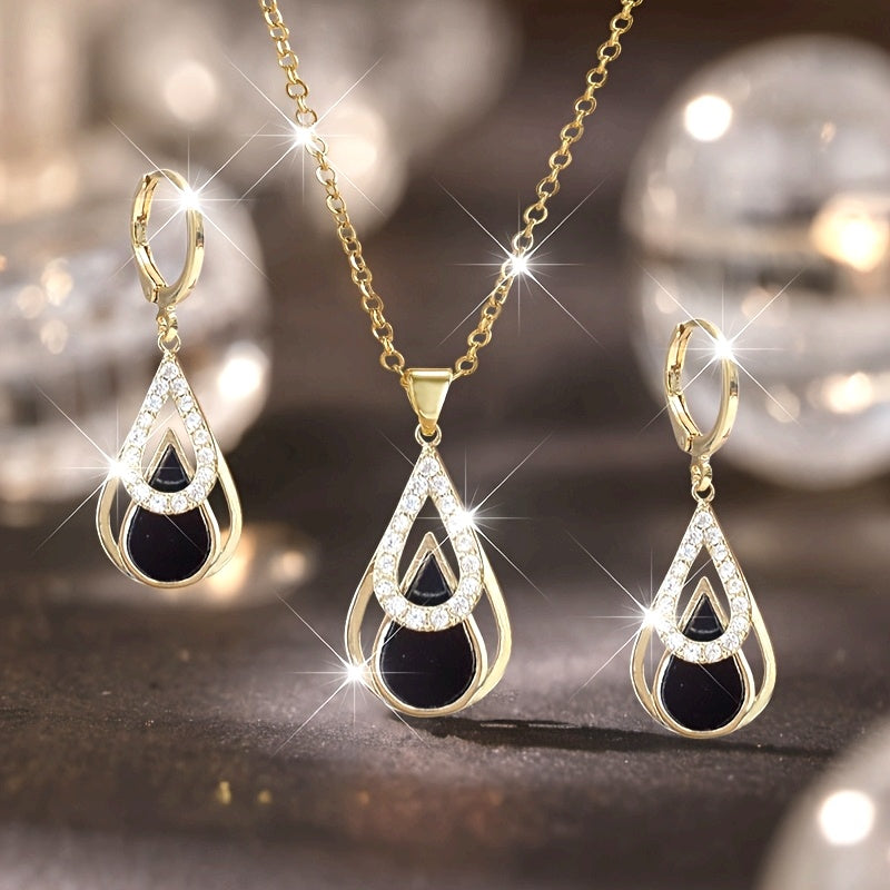 Elegant 3-piece set with water drop pendants for sophisticated sparkle — perfect for parties, weddings, or birthdays.