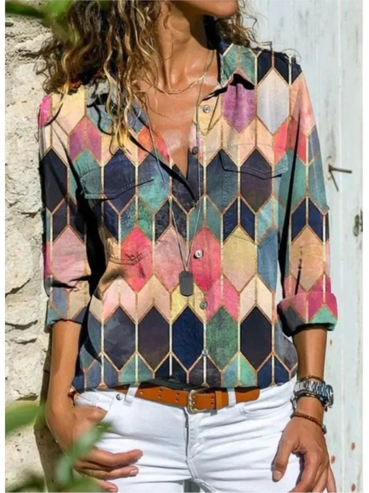 2020跨境欧美外贸独立站热卖秋冬新款印花翻领休闲T恤上衣女