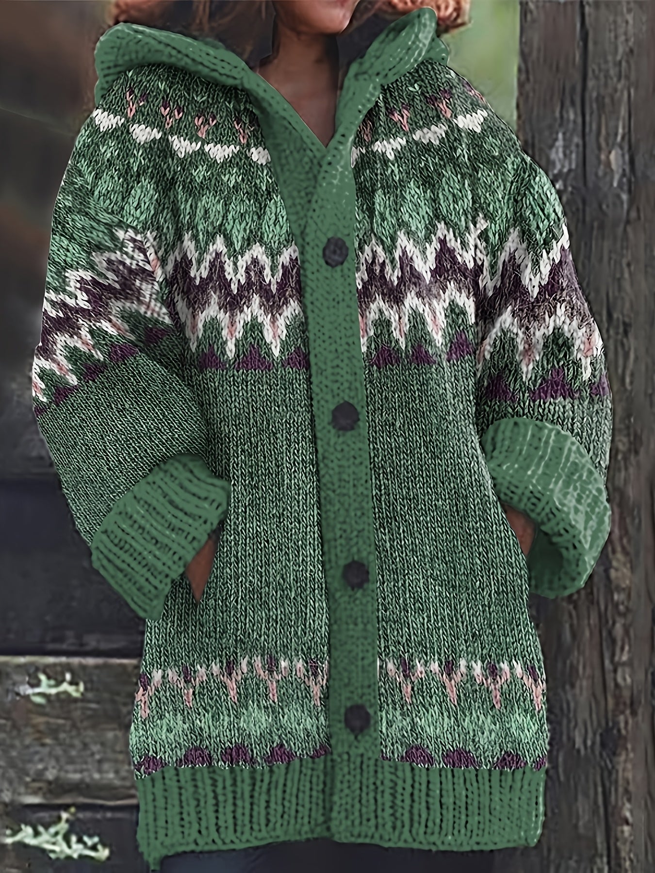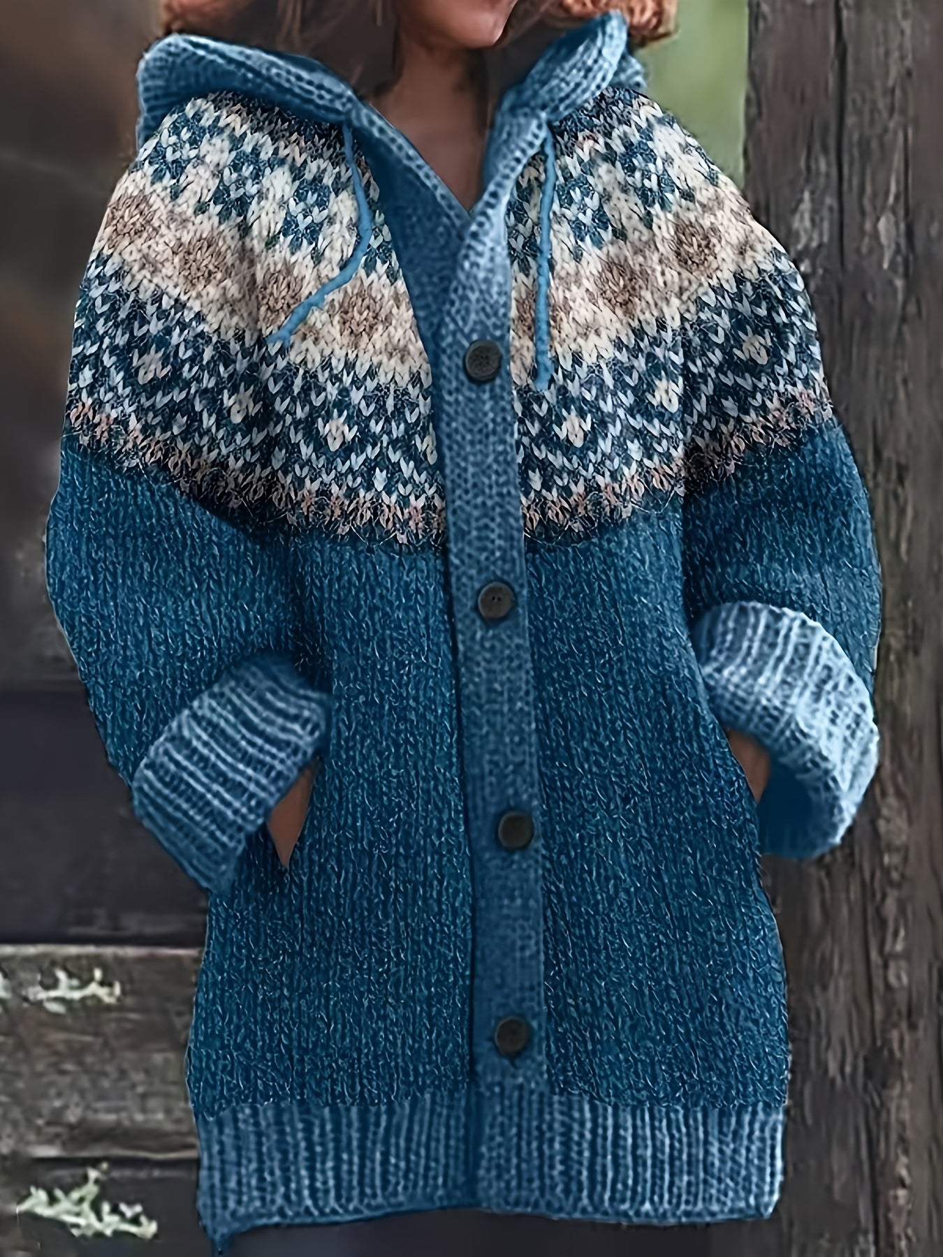Women'S Elegant 3D Printed Thick Hooded Cardigan Sweater Coat